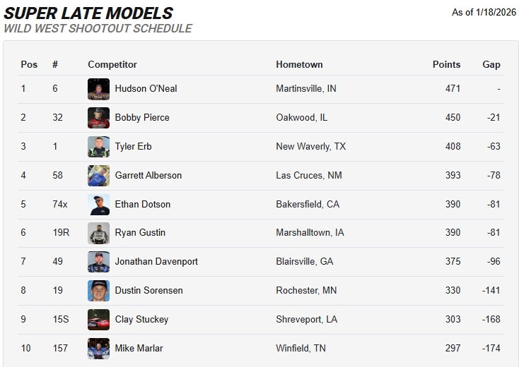 While Pierce got his first win, Hudson O’Neal’s third place finish did secure him the overall mini series championship. He beat Pierce by 21 points.