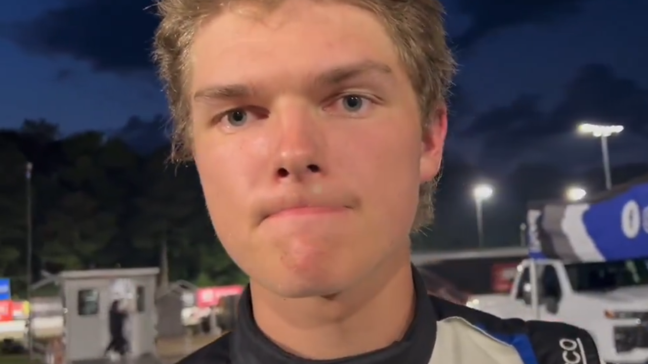He then went on to explain why he confronted Eatmon, “He drove into my left rear down there one lap. And I got back to him, gave it back to him down here, and I thought the slate was good and come the last couple of laps he just — he had to be in the grass because I was two [tires] on the apron and just drove through me and whoever was on my outside, [Carson Loftin] or Kade [Brown] or somebody. I don’t know. Then after the race, throttle stuck going down the straightaway and that’s why I got into Kade.”