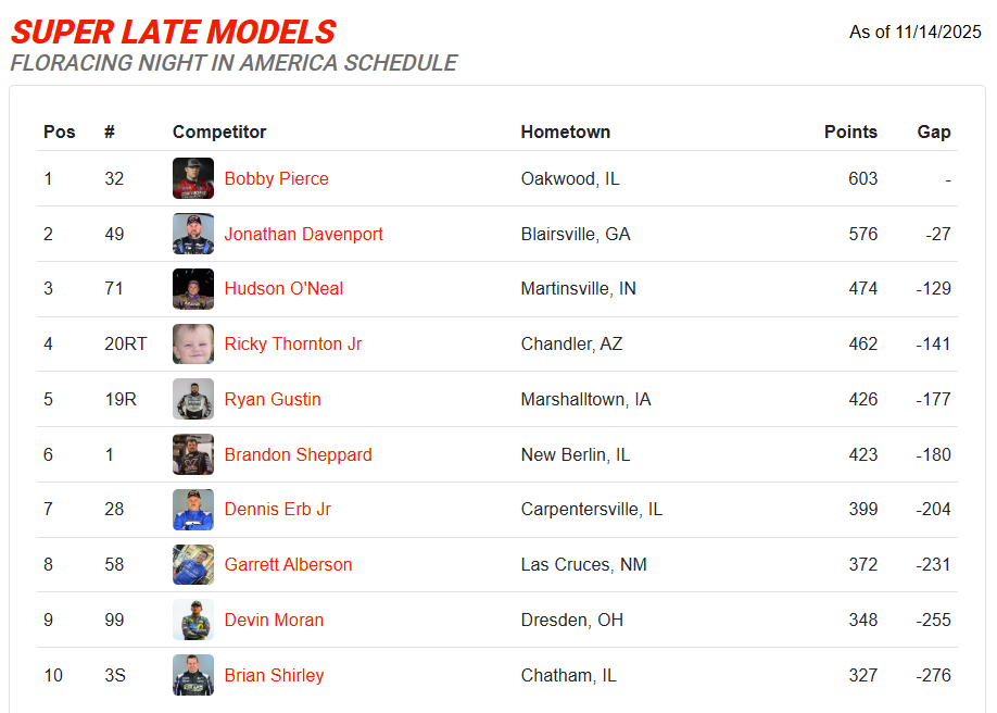 Pierce ended up finishing in 7th and was able to maintain his points lead over Jonathan Davenport despite Davenport winning and himself avoiding being sent to the rear after spinning and making contact with Tyler Millwood earlier in the race.