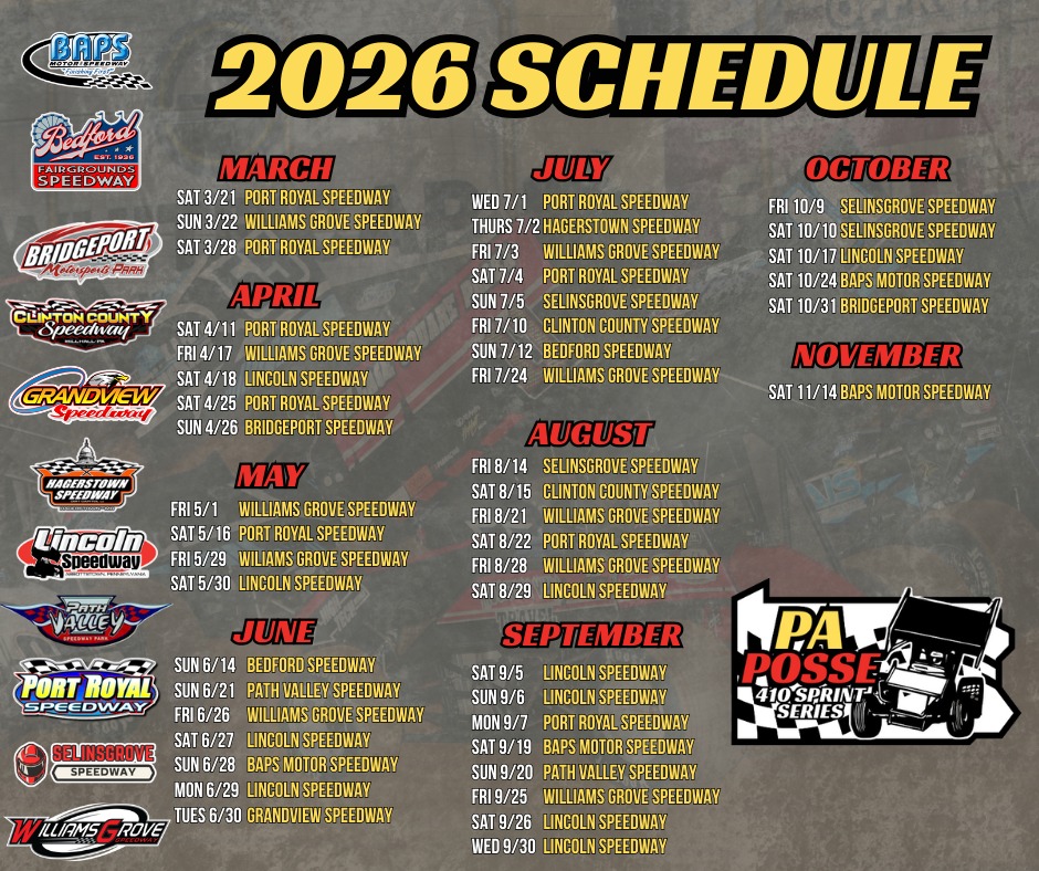 The newly announced PA Posse 410 Sprint Car Series revealed its full schedule and points structure for its inaugural 2026 season.