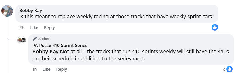The series also noted that it will not replace weekly racing at tracks that run 410 Sprint cars weekly, “The tracks that run 410 sprints weekly will still have the 410s on their schedule in addition to the series races.”