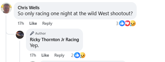 In the comments on the post, Thornton confirmed he’d only be racing in the event on that night and none of the others.