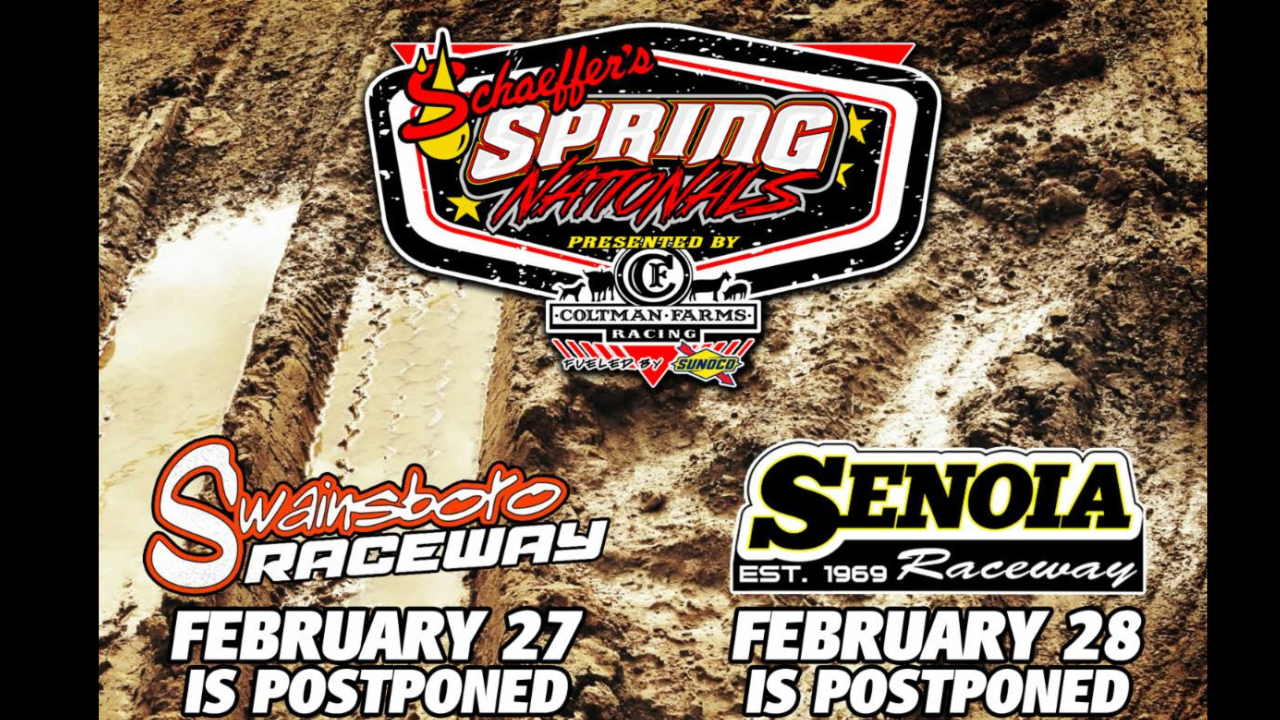 Ray Cook and the Schaeffer’s Oil Spring Nationals announced that their series opening races for this upcoming weekend at Swainsboro and Senoia Raceway have been postponed due to saturated grounds and impending weather.